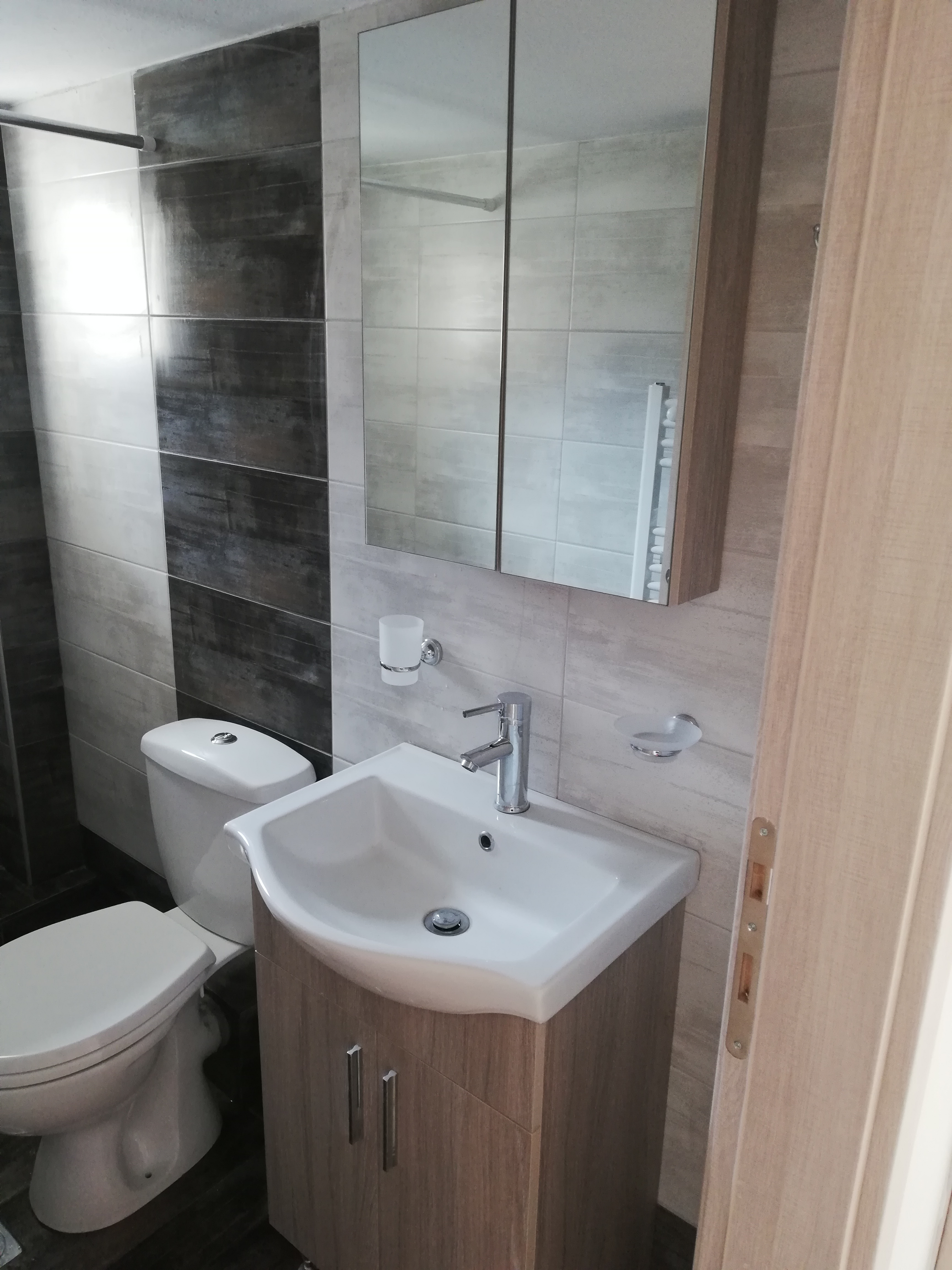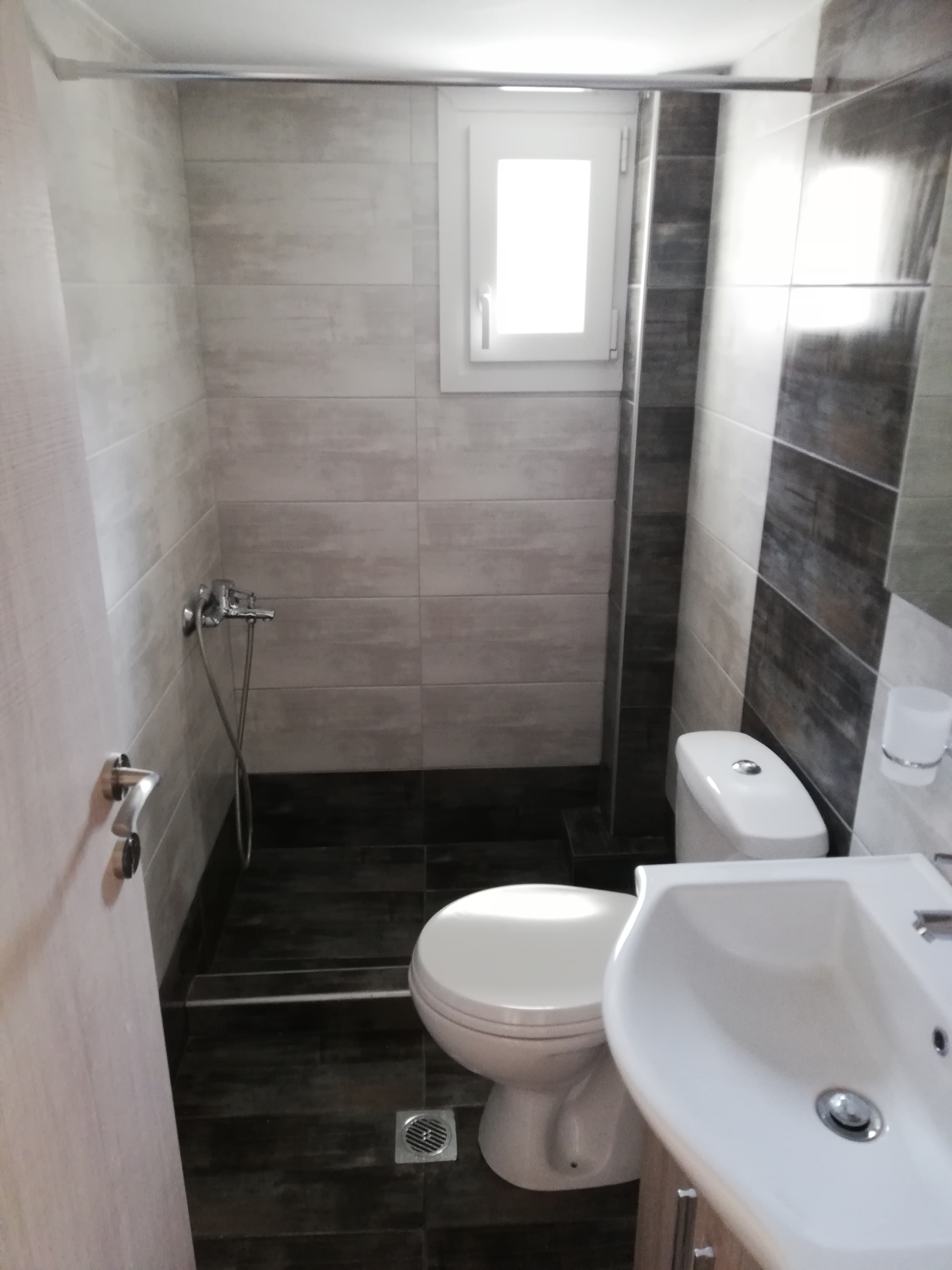 Με την αυτοψία μας στο χώρο του ιδιοκτήτη και την κατάθεση της οικονομοτεχνικής μας προσφοράς, μας ανατέθηκε η ολική ανακαίνιση της κατοικίας. Σε συνεννόηση με τον ιδιοκτήτη αποφασίσαμε να αποξηλώσουμε στο υπνοδωμάτιο τα παλιά σανίδια και να εγκαταστήσαμε καινούργια ηλεκτρολογικά και υδραυλικά στην κατοικία. Στην συνέχεια της ανακαίνισης του σπιτιού τοποθετήσαμε τσιμεντοκονία στο υπνοδωμάτιο και πλακάκια σε όλο το σπίτι εσωτερικά και στο μπαλκόνι. Στην συνέχεια έγιναν οι εργασίες ανακαίνισης του μπάνιου αποξηλώνοντας τα παλαιά πλακίδια και έπειτα τα παλαιά υδραυλικά. Τοποθετήθηκαν μετά τα καινούργια υδραυλικά, τα πλακίδια και τα είδη υγιεινής.