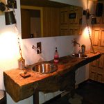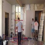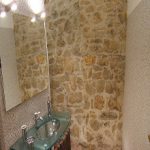 Έχοντας στην διάθεση μας τα έμπειρα συνεργεία μας ξεκινήσαμε με την ολική αποξήλωση του μπάνιου καθώς υπήρχαν πλακάκια στους τοίχους και στο πάτωμα που δεν συνδυάζονταν με το υπόλοιπο ύφος του τουριστικού καταλύματος. Αποξηλώθηκαν οι παλιές εγκαταστάσεις ύδρευσης-αποχέτευσης και εγκαταστήσαμε καινούργιες. Επενδύσαμε κάποιους τοίχους με πέτρα μέσα στο μπάνιο και στον νιπτήρα. Τοποθετήθηκαν γυψοσανίδες στην οροφή του χώρου της εσωτερικής πισίνας και στους χώρους αναμονής του ξενώνα. Έγιναν επίσης ολικές επεμβάσεις στα δωμάτια από τους επιπλοποιούς μας, τοποθετώντας έπιπλα συμβατά με τον παραδοσιακό χαρακτήρα του χώρου. Τέλος έγινε ο ελαιοχρωματισμός όλων των χώρων του ξενώνα.