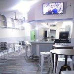 Στον κυρίως χώρο της καφετέριας αφού αποψιλώθηκε ο προηγούμενος χώρος τοποθετήθηκε πάτωμα laminate που προσέδωσε έναν χώρο χαλάρωσης που ήθελε ο ιδιοκτήτης της καφετέριας. Στο μπαρ σχεδιάσαμε κάτι ιδιαίτερο καθώς θέλαμε να τονίσουμε τον συγκεκριμένο χώρο. Στην συνέχεια τοποθετήθηκε η επίπλωση από τους επιπλοποιούς μας. Τα χρώματα και ο φωτισμός ανανέωσαν και μεγάλωσαν τον χώρο της καφετέριας, και σε συνδυασμό με τις άλλες εργασίες έφεραν το επιθυμητό αποτέλεσμα, να προσελκύσει περισσότερους πελάτες η επιχείρηση.